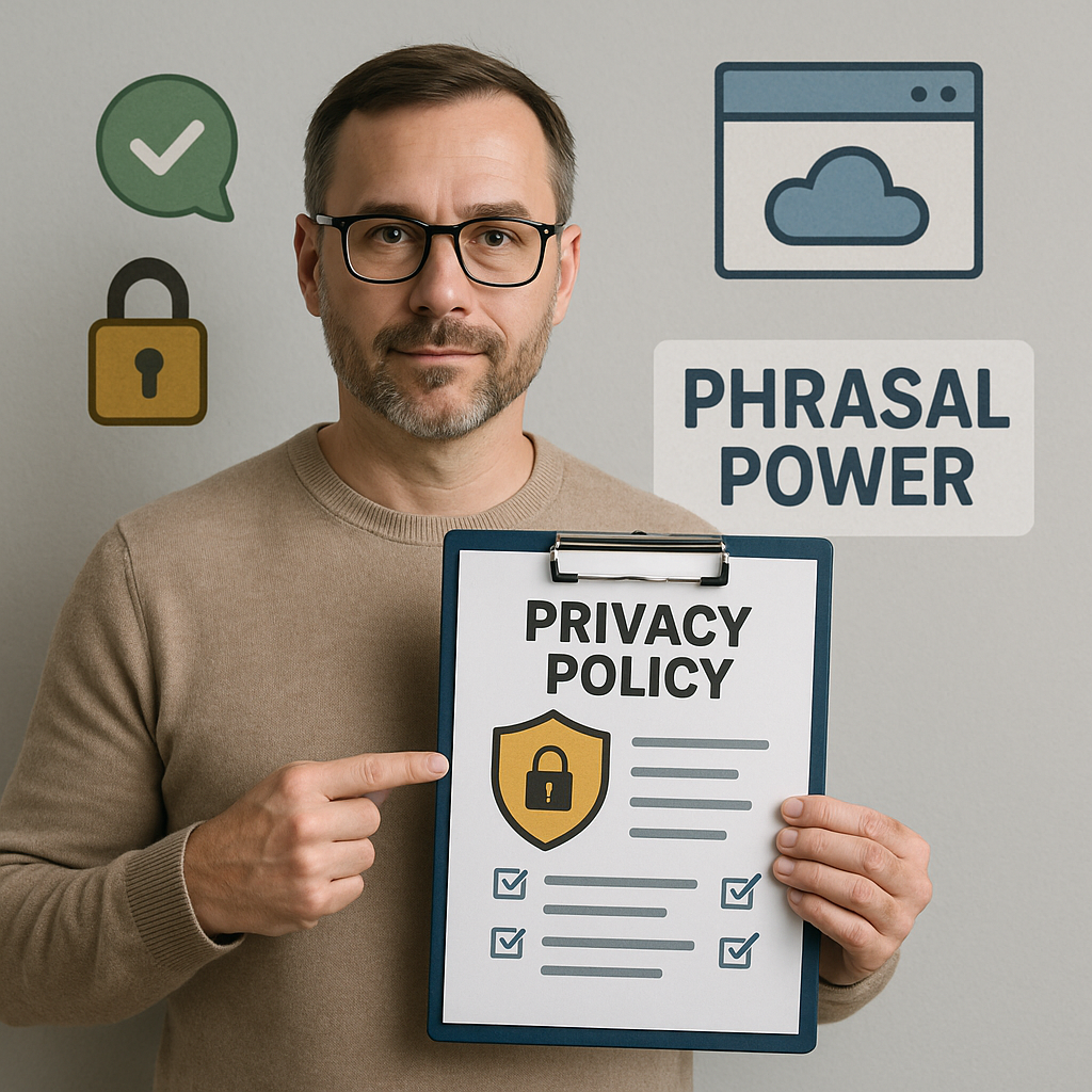 Phrasal Power, operated and developed by Iryna Kukhtyk, an individual developer (“we”, “our”, or “us”), respects your privacy and is committed to protecting the personal information you provide while using our mobile application and related services (the “App”).